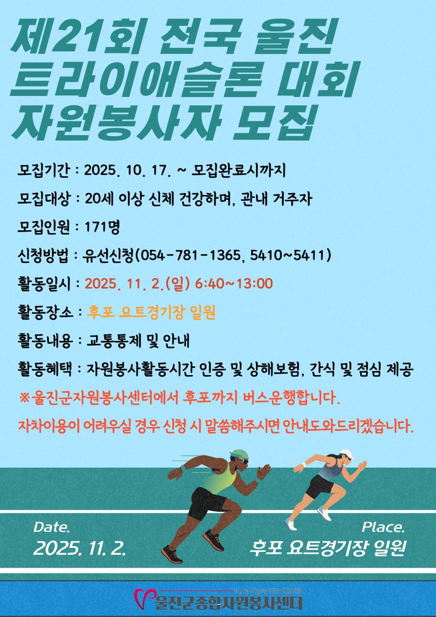 제21회 전국 울진 트라이애슬론 대회 자원봉사자 모집