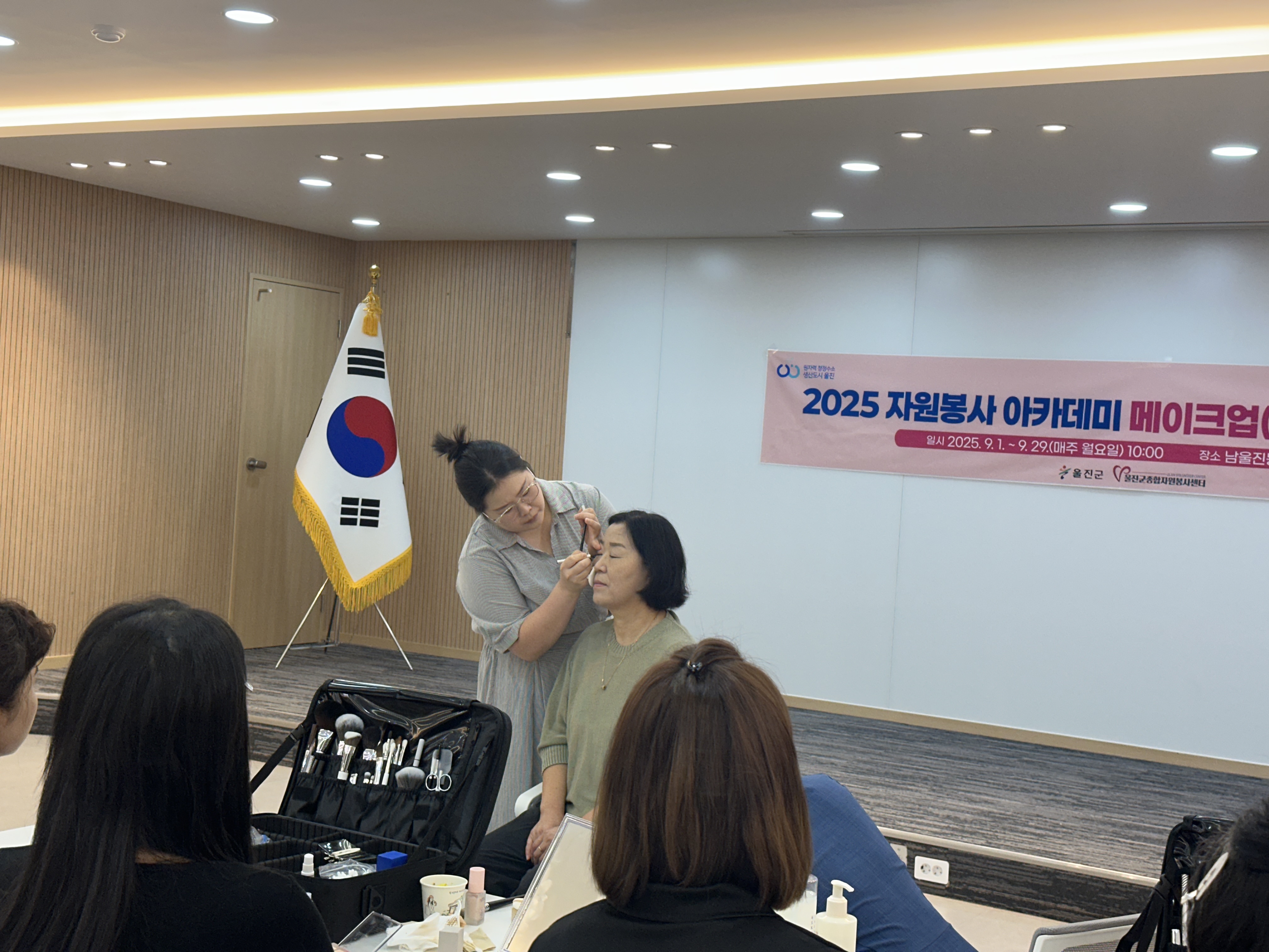 2025년 9월 8일(월) 10시, 남울진농협 2층 회의실에서 '2025 자원봉사 아카데미 메이크업 전문교육 2회차'를 진행하였습니다.